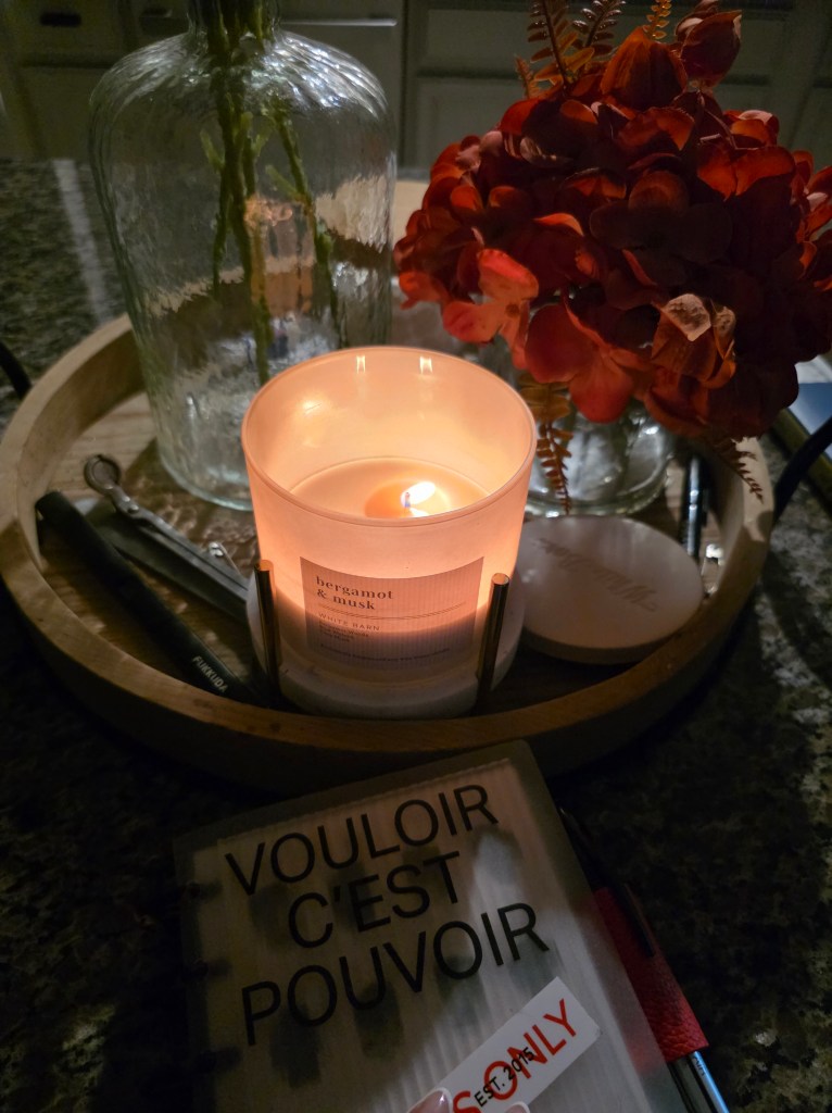 I was captivated by the aesthetic in the room. The crackling wood wick candle. The steam radiating from my coffee. The ease with which my pen glided across the paper indicating that I was in a state of calm. That simple trio of flame, warmth, words became my quiet rebellion against hurry.